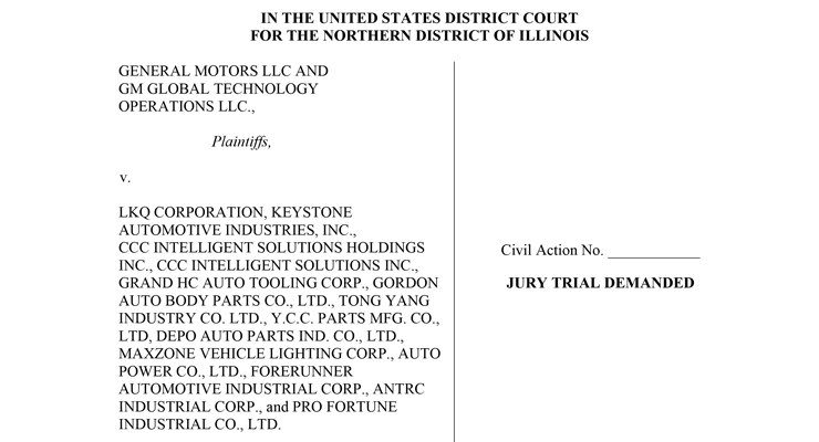 GM Sues Multiple Aftermarket Parts Manufacturers, Distributors and Estimating Software Providers for Design Patent Infringement