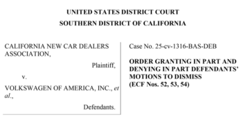 Federal Court Allows Auto Dealer Lawsuit Against Volkswagen, Scout Motors to Proceed