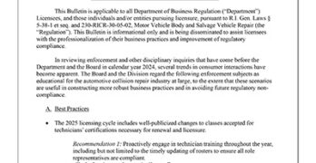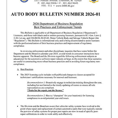 Rhode Island DBR Issues Auto Body Bulletin on Best Practices, Enforcement Trends