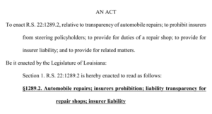 Filed Under: Feature Tagged With: Anti-Steering, legislation, Louisiana, Non-OEM Parts