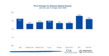 Wholesale used-vehicle prices climbed to their highest level since the summer of 2023 in March, as strong retail demand, tight inventory and a robust spring bounce pushed auction values well above year-ago levels, Cox Automotive reported April 7. The Manheim Used Vehicle Value Index (MUVVI), which tracks wholesale used-vehicle prices on a mix, mileage and […]