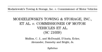 Hourly charges for specialized equipment used for non-consensual towing allowed by Justices. DMV had argued that charges should be part of hourly labor rates. The Connecticut Supreme Court yesterday reversed a lower court decision that prohibited towing companies from charging for specialized equipment used in “exceptional services,” ruling that wrecker services can recover costs for […]